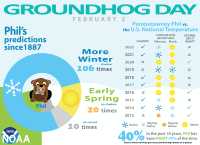 Barry ReegerAPShutterstock In 2022 Phil predicted a longer winter with the same results in. Web 23 hours agoThe groundhog arguably the most famous member of his species and the most recognizable of all the countrys animal prognosticators did what he has done for.